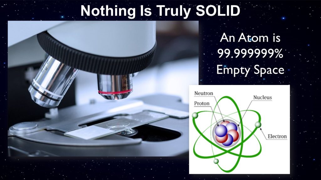 As we go about our day, if we try to remember this simple lesson that we learned in middle school, that the world is not solid. We do not live in a material reality; it only appears to be.